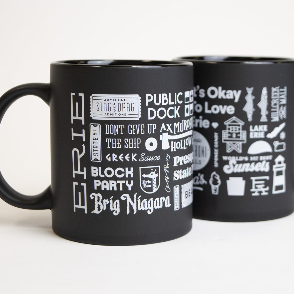 Our classic Erie Collage design features all things Erie in a satisfyingly geometric pattern!
