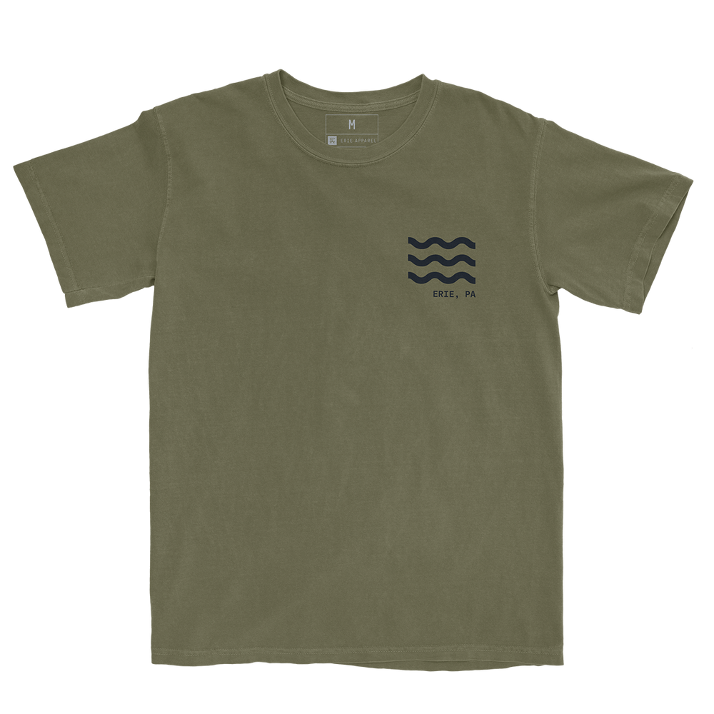 Bold, basic, and to the point. This tee features a geometric rendition of the Bicentennial Tower at Dobbin's Landing. Erie's most notable landmark.