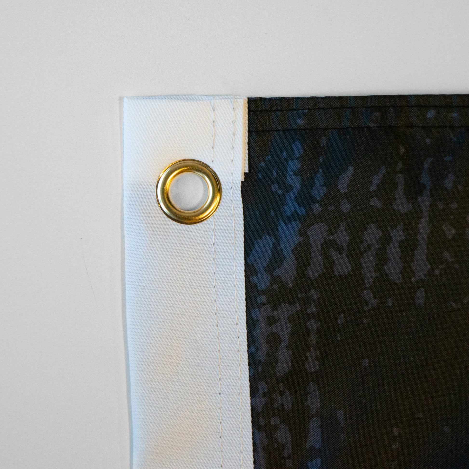 Design printed on a 3' x 5' heavy duty polyester flag. Double sided with a light blocking center ply. Includes brass 2 grommets for hanging.