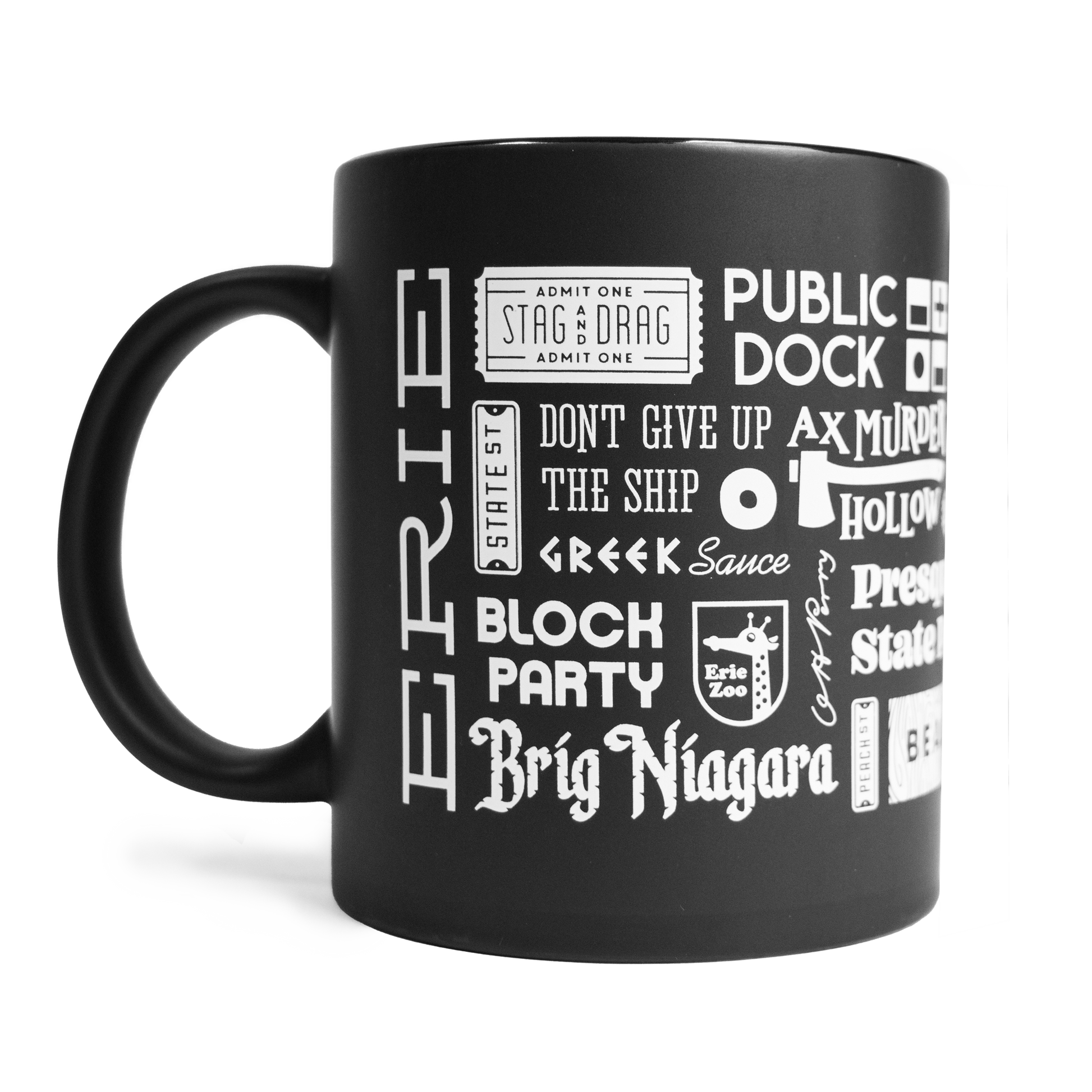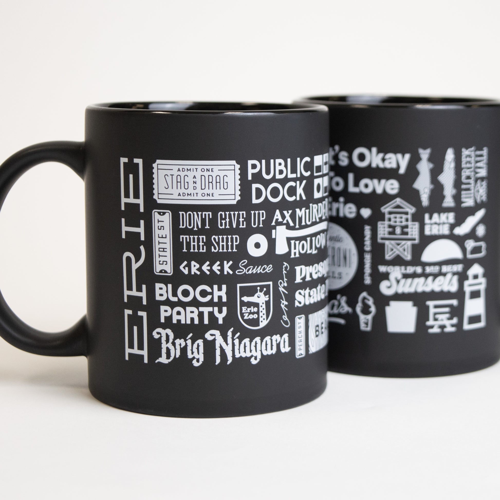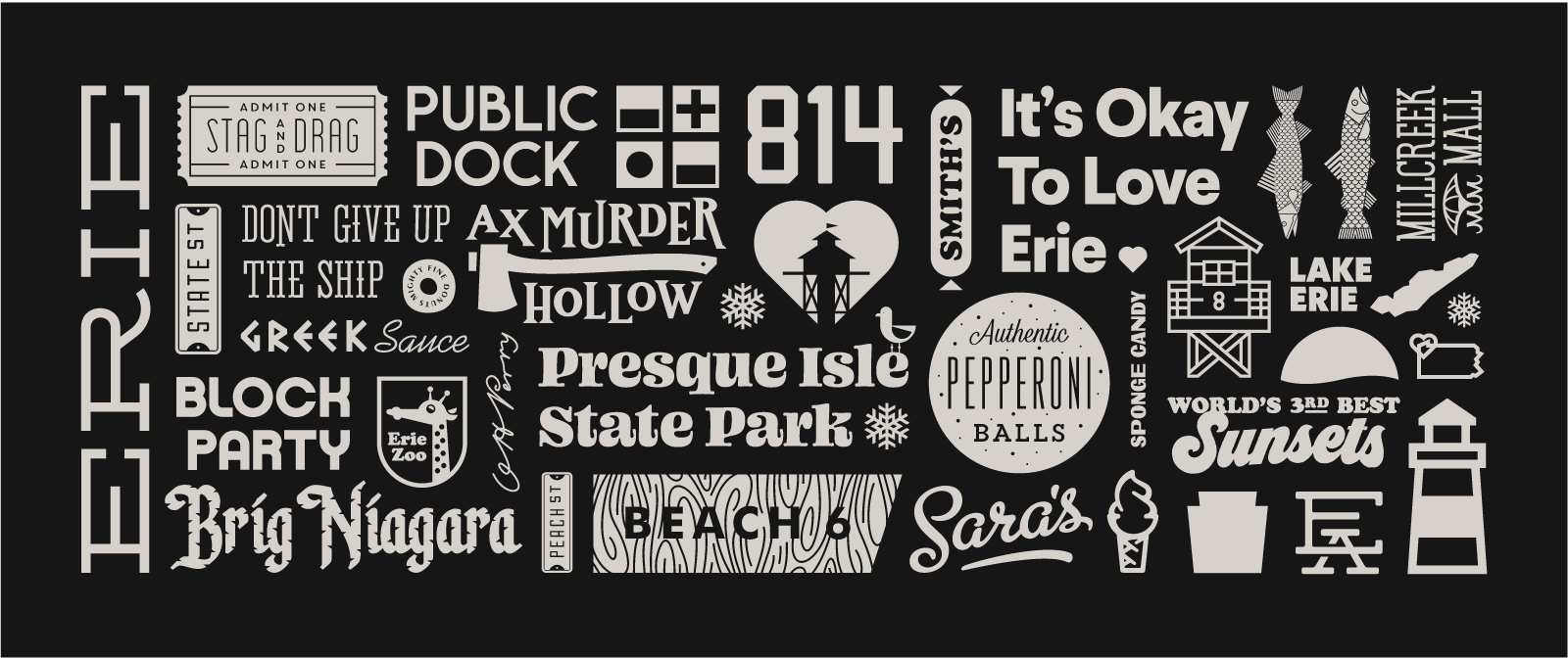 Our classic Erie Collage design features all things Erie in a satisfyingly geometric pattern!