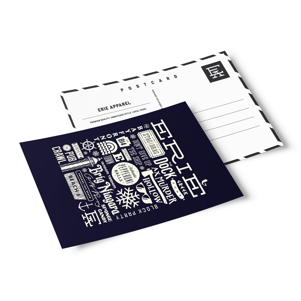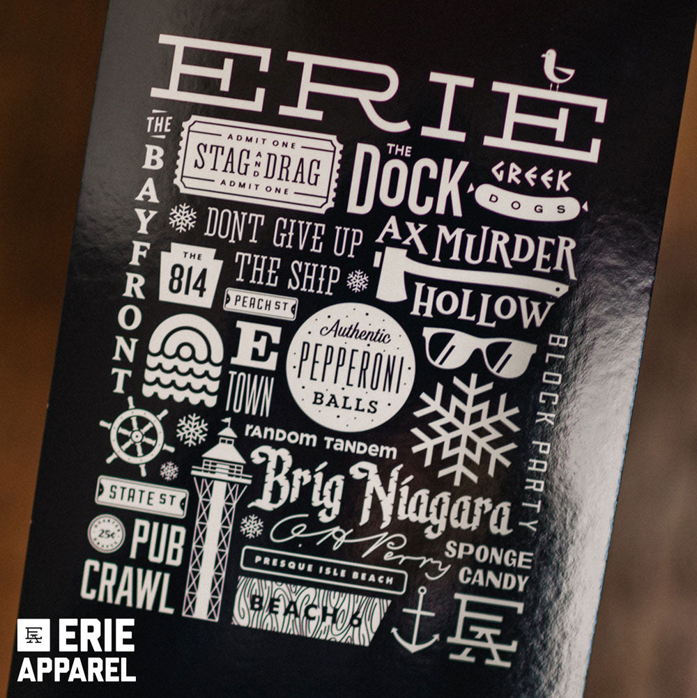 Our classic Erie Collage design features all things Erie in a satisfyingly geometric pattern!