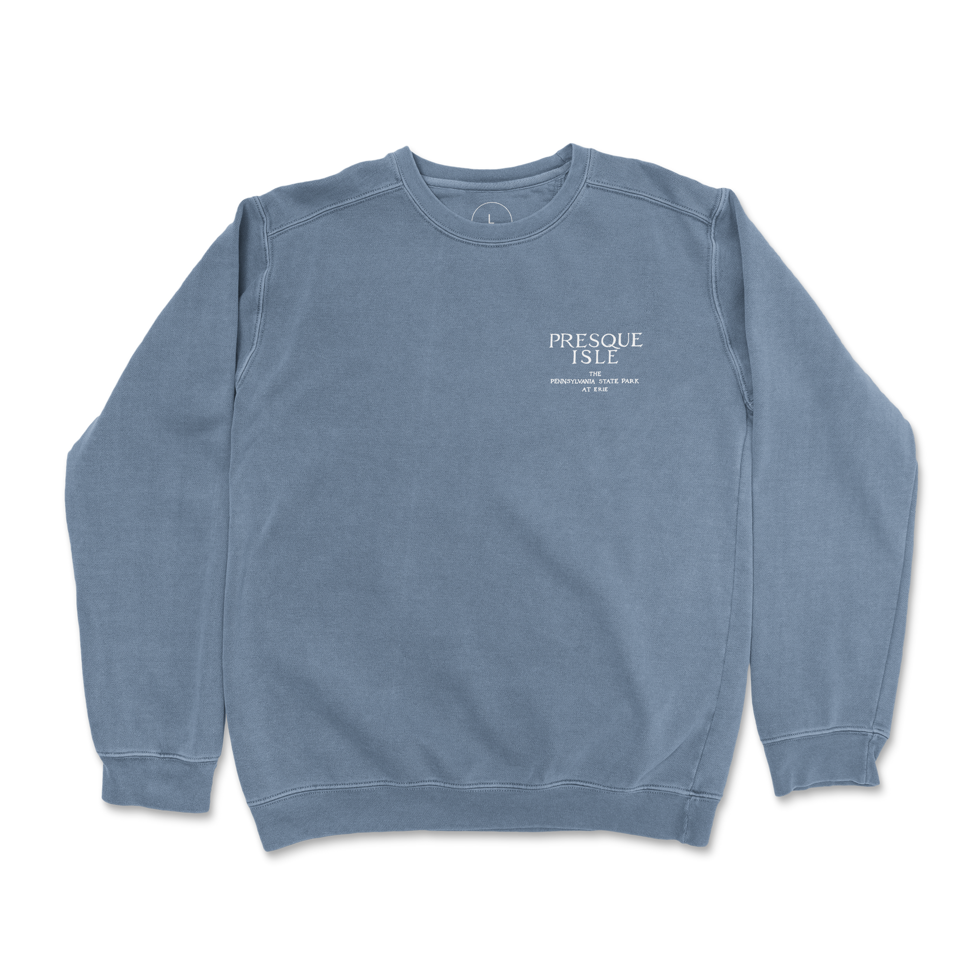 Printed on a pigment-dyed 80% cotton / 20% polyester blend crewneck. 100% cotton face. Comfort fit.